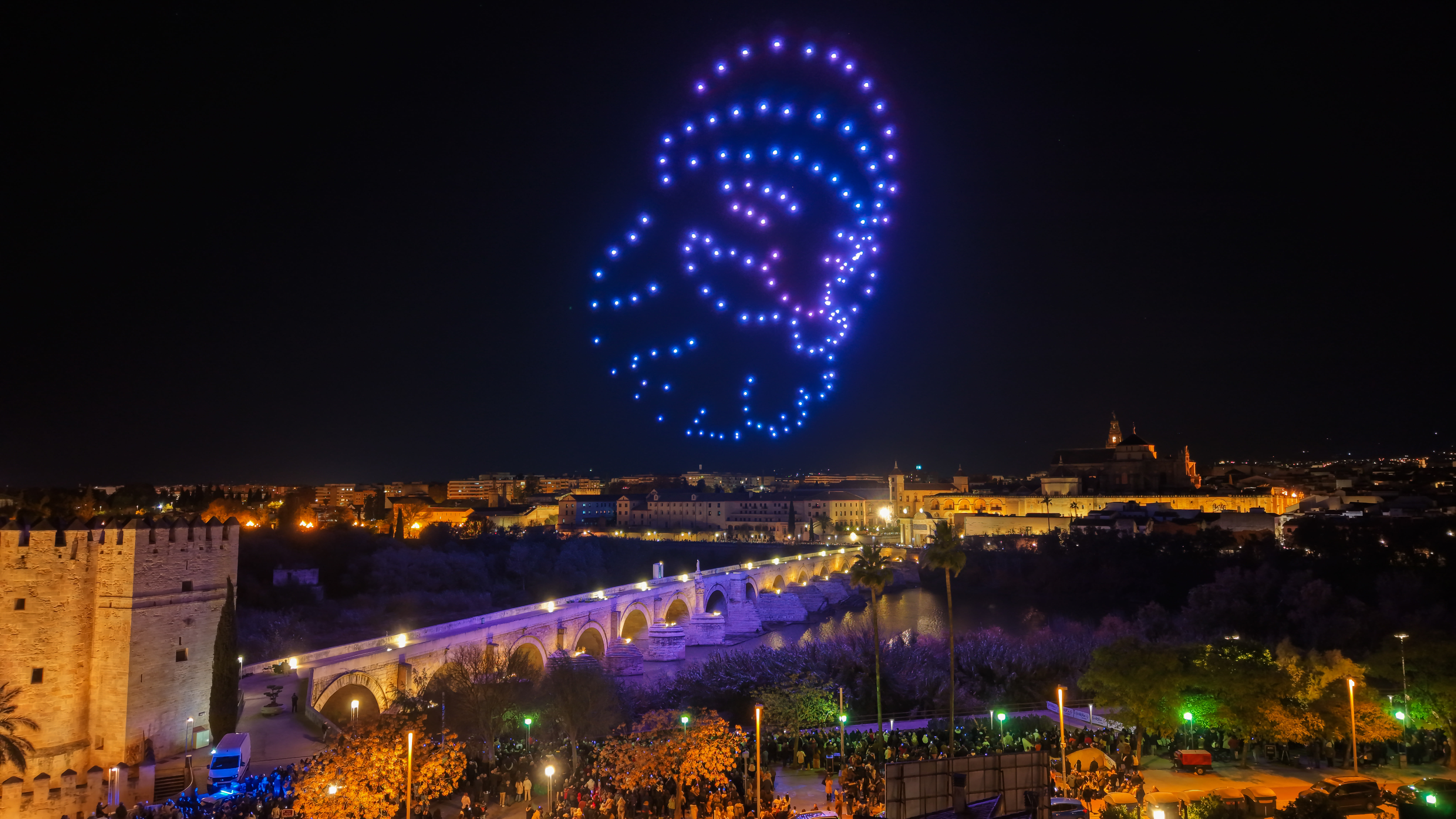 150 drones iluminaron el cielo de Córdoba con un espectáculo navideño que homenajeó el 31º aniversario del Casco Histórico